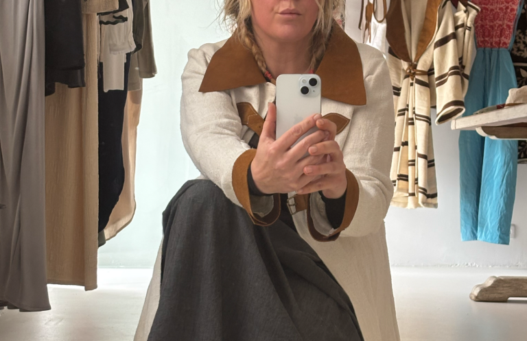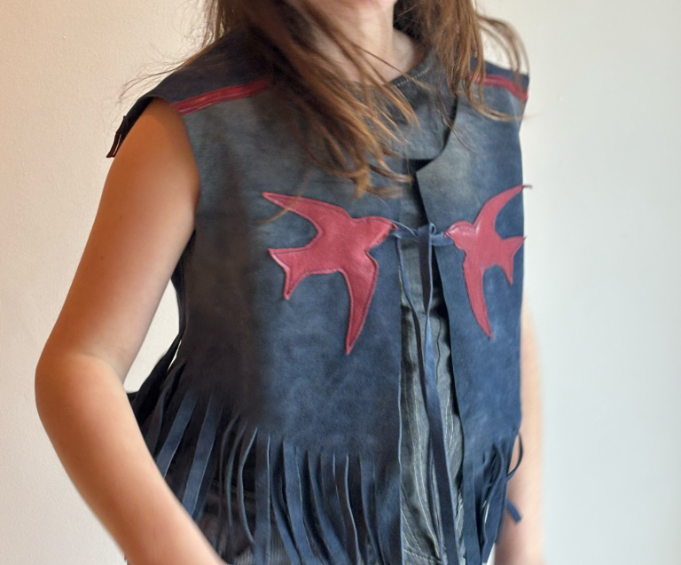 Each piece is handmade, one-off, or produced in small runs using reclaimed textiles and repurposed materials.