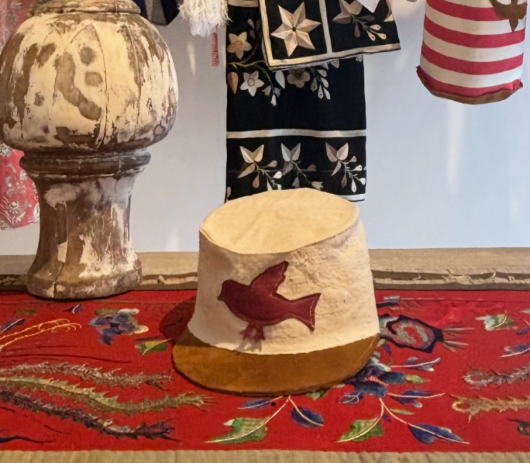 Each piece is handmade, one-off, or produced in small runs using reclaimed textiles and repurposed materials.